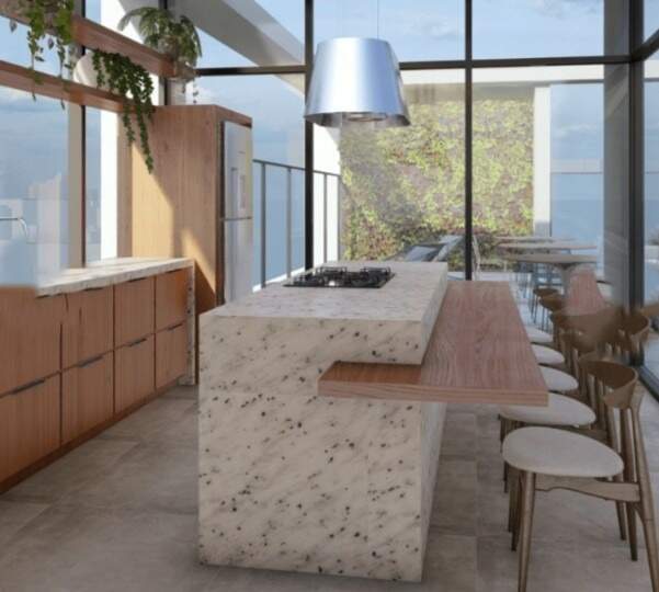 Área de lazer completa com: Fitness center, salão de festas, espaço gourmet no rooftop, co-working com sala de reunião, lavanderia compartilhada, mercadinho interno, jardim elevado com paisagismo e hall de entrada sofisticado. Lazer no topo do edifício, combinando vistas panorâmicas com áreas de convivência aconchegantes.